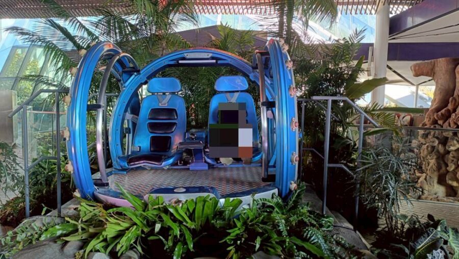 松村さんが記念撮影をしていた球体の乗り物はエスカレーターを上がった、クラウドフォレストの出口前に設置されています。