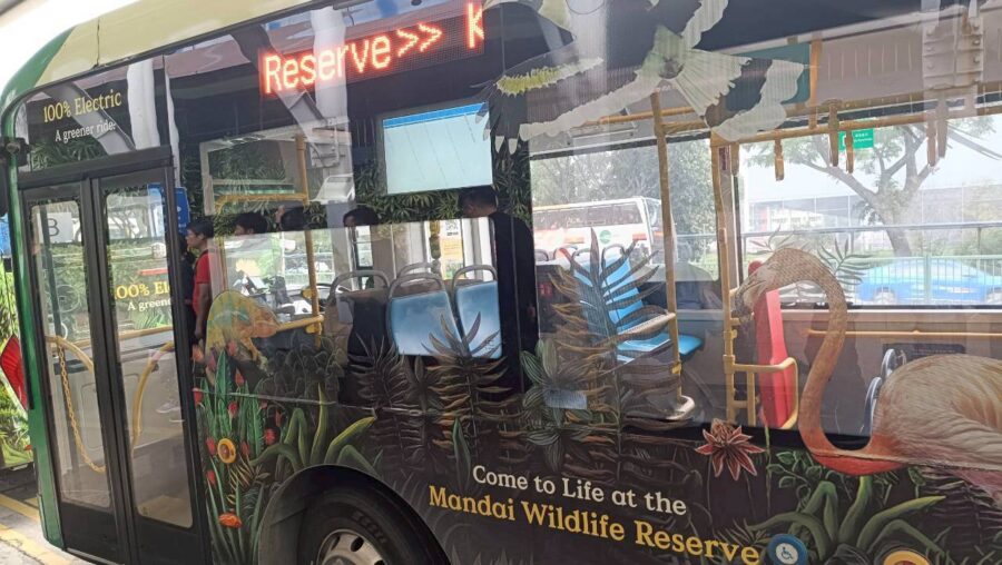 同じルートを辿りたい方は、水族館を楽しんだあとバスの標識を探してバス乗り場に行きます。バスは3種類ありますが、動物園の運営会社「Mandai」のバスに乗りましょう。動物が目印です。