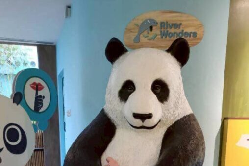 ジェシーさんが記念撮影をしていたパンダの像や大きな魚は、パンダのエリアから出口に向かうとみることができます。
