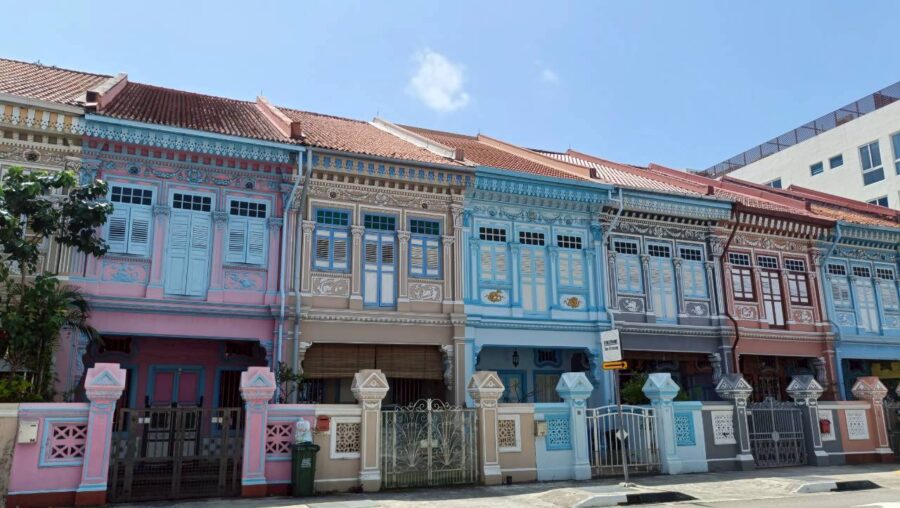 スタート地点はペラナカン・ハウスでした。両サイドに印象的な建物が並んでいます。