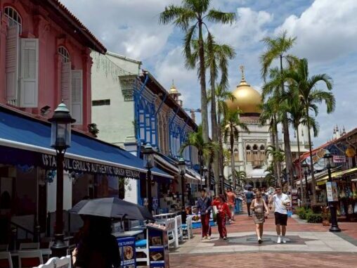 ストリートからサルタンモスクが見えるので人気の撮影スポットになっています。