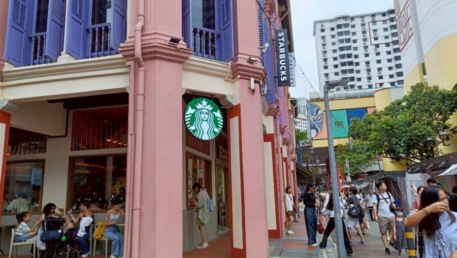 おしゃれな外観が人気のスターバックスの店舗もチャイナタウンにあります。「星巴克」の中国語表記が新鮮です。
