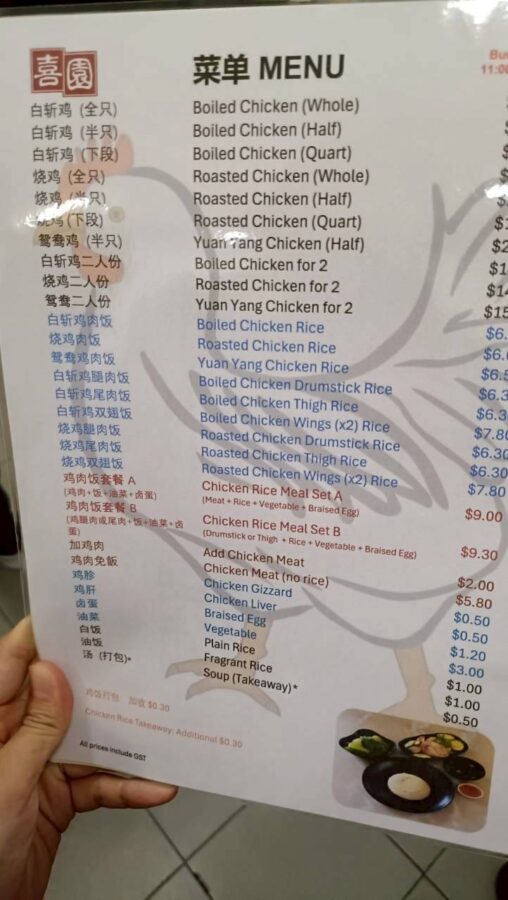 チキンのメニュー