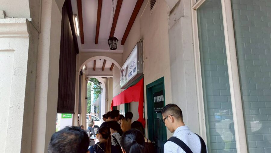 私の伺った日は一列でしたが、カヤトーストと他の食事の列が別の日もあるようです。